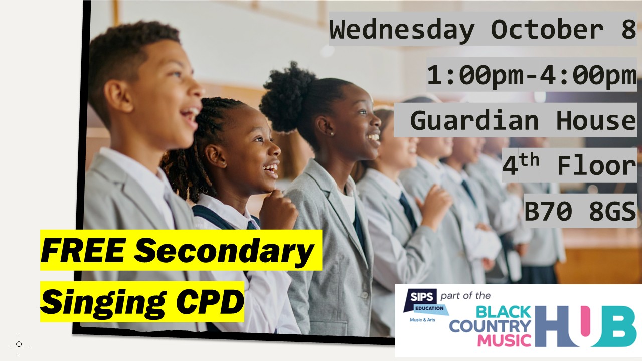 CPD SESSIONS: Alongside SIPS Education’s training offer to schools, we are pleased to once again offer FREE face to face sessions which we subsidise as part of our Arts Council England Funding. These range from Making Music in the Classroon, Primary and Secondary Singing Sessions, Music Composition and more. These have been designed to meet the needs of Primary, Secondary, SEND Settings from needs analysis.
